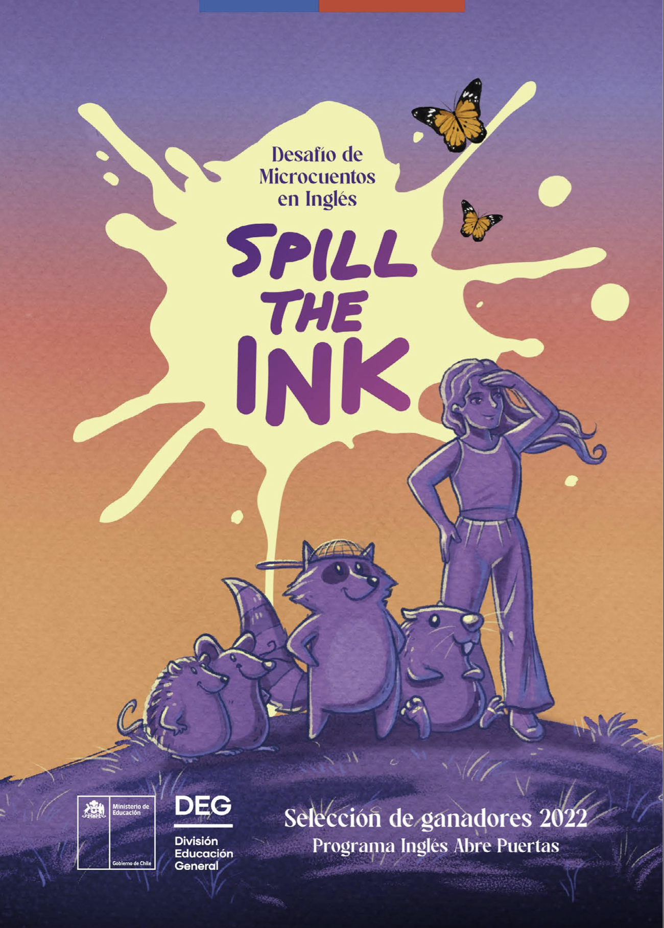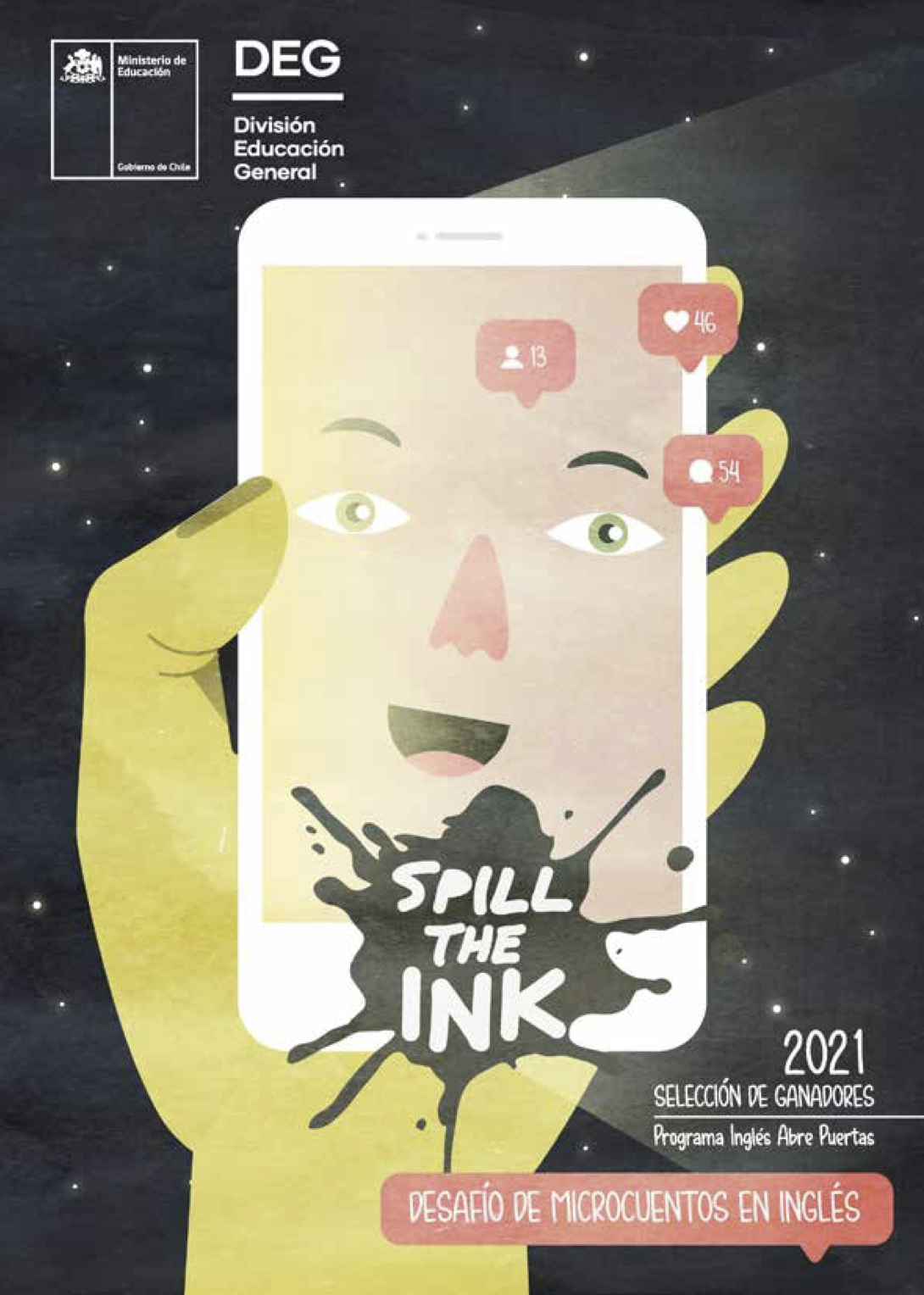 Spill the Ink es una iniciativa está dirigida a estudiantes de Iº a IVª medio, que les invita a fortalecer la habilidad lingüística productiva de escritura, mediante la creación de microcuentos en inglés de entre 80 y 100 palabras de temáticas de la actualidad e interés del público, siguiendo los pasos del proceso de escritura indicados en el Currículum Nacional de Inglés.
